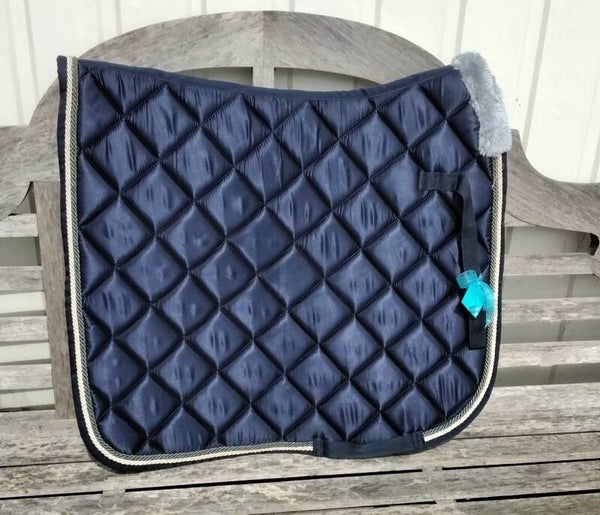 Variant op onze zadeldoeken, met dubbele piping in grijs/ creme en grijs schoftbontje.