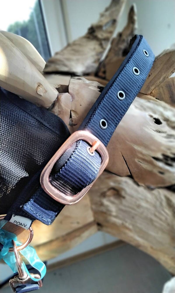 Verstelbare neusriem en kopstuk. Zachte fleece voering terhoogte van de neus, kopstuk en bakstukken.