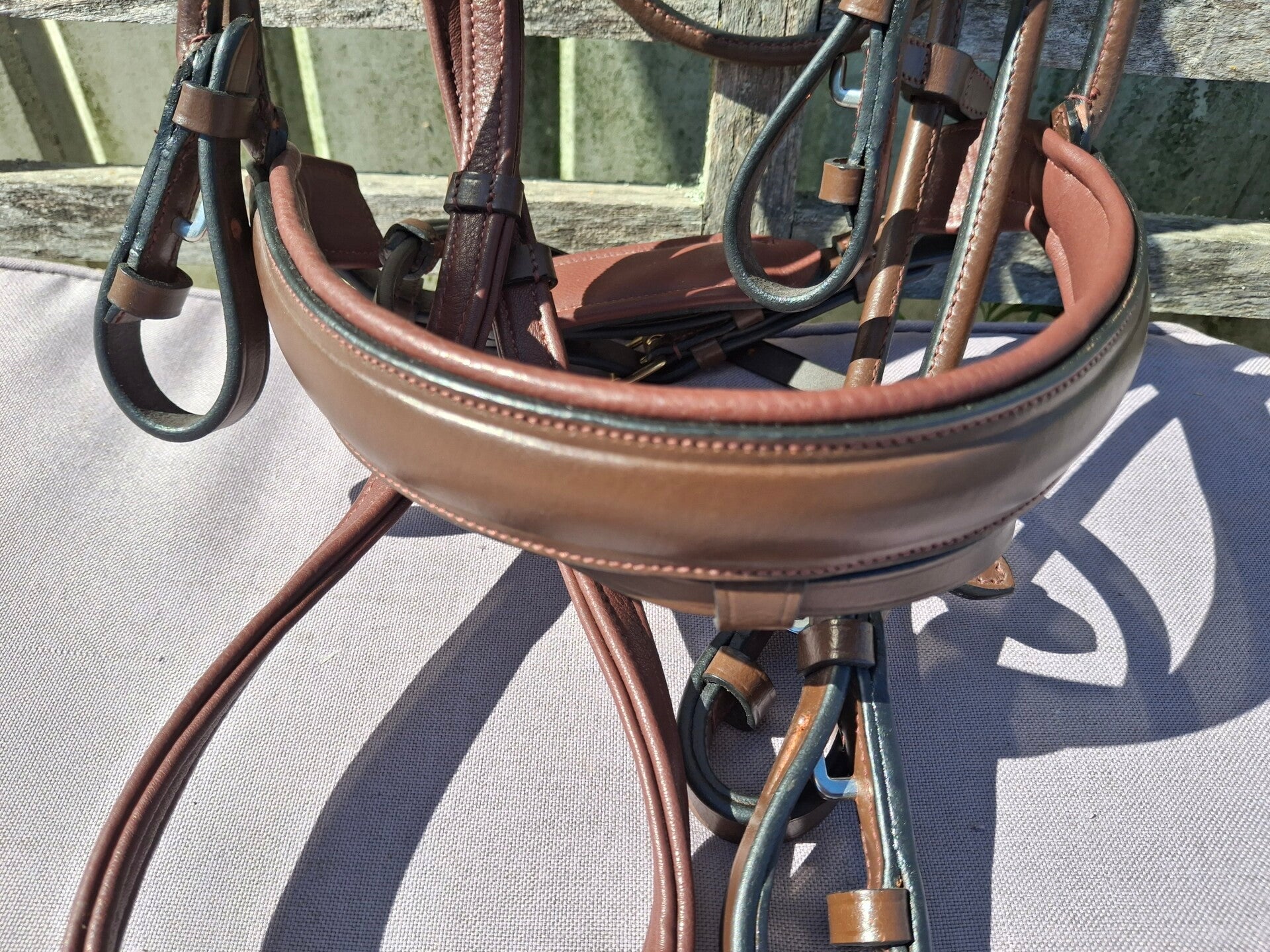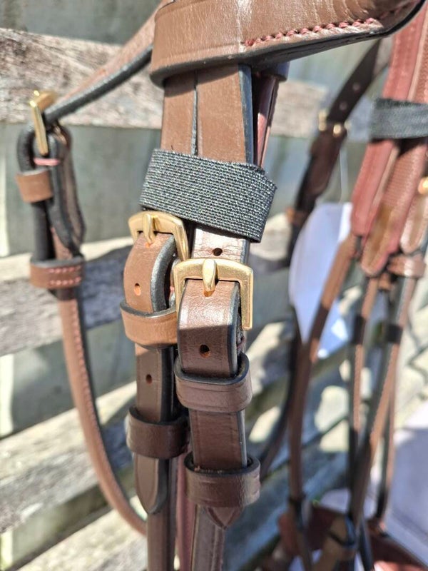 Super classy en chique hoofdstel uit premium hazelnootkleurig leder, volledig onderlegd met roodbruin kalfsleder.