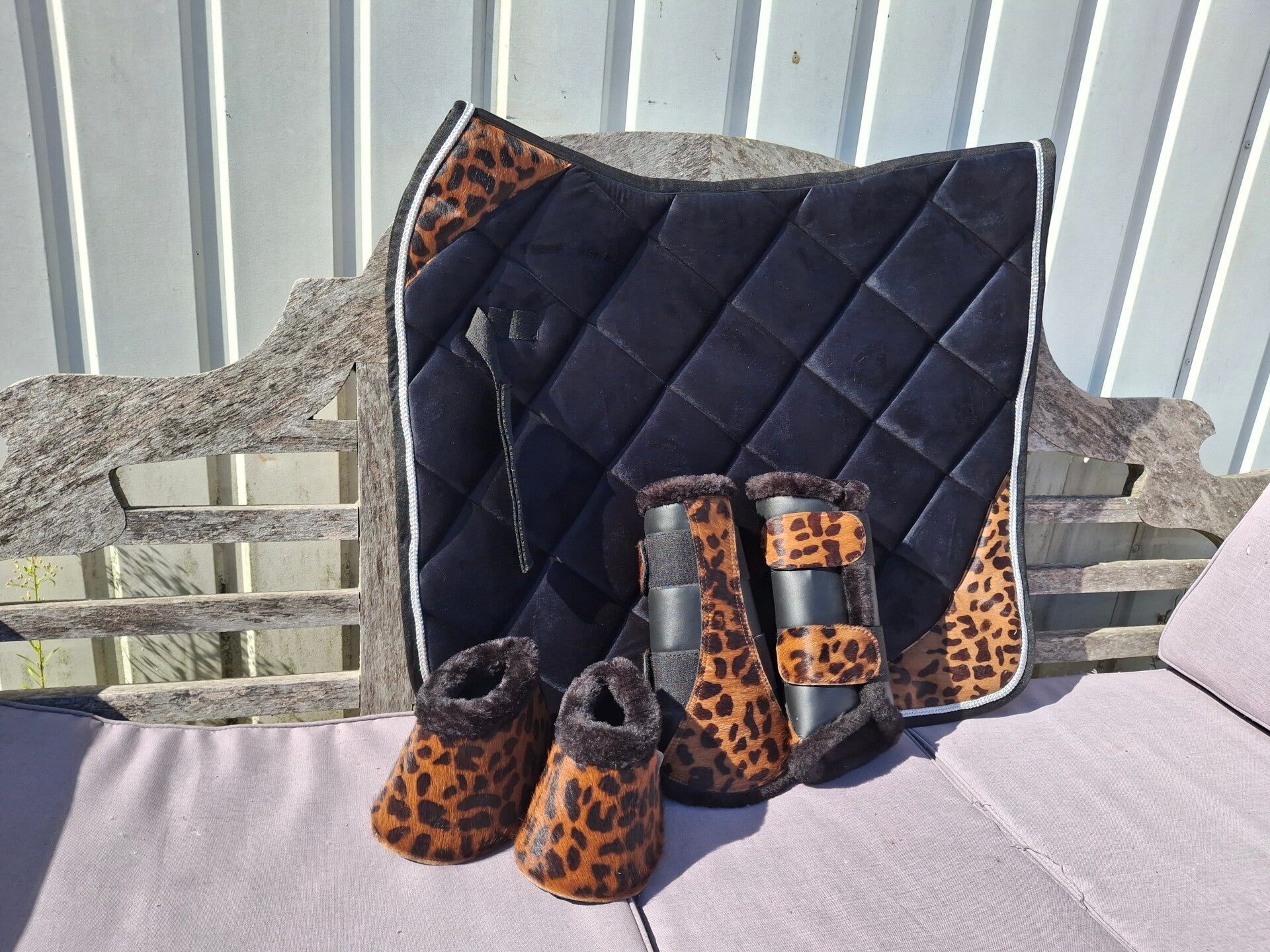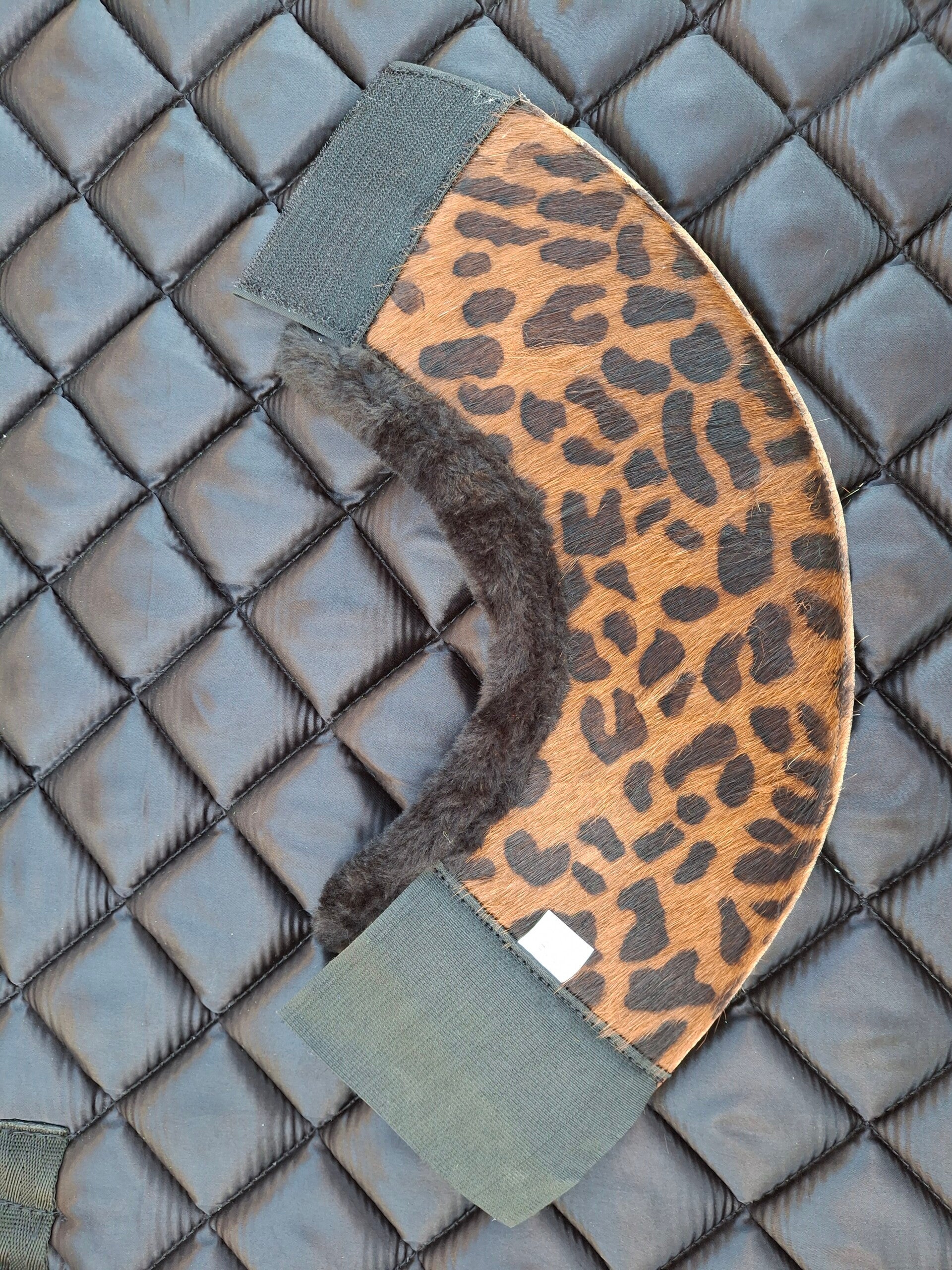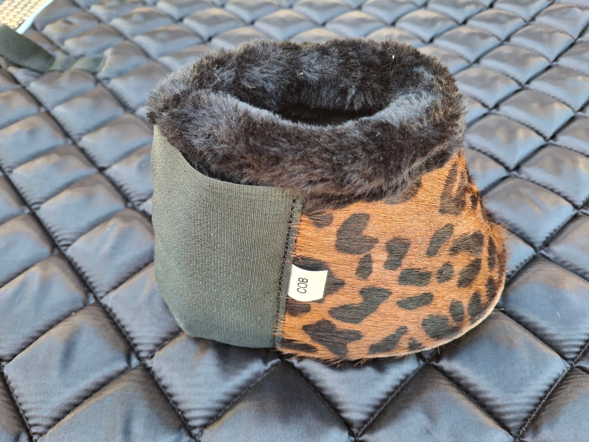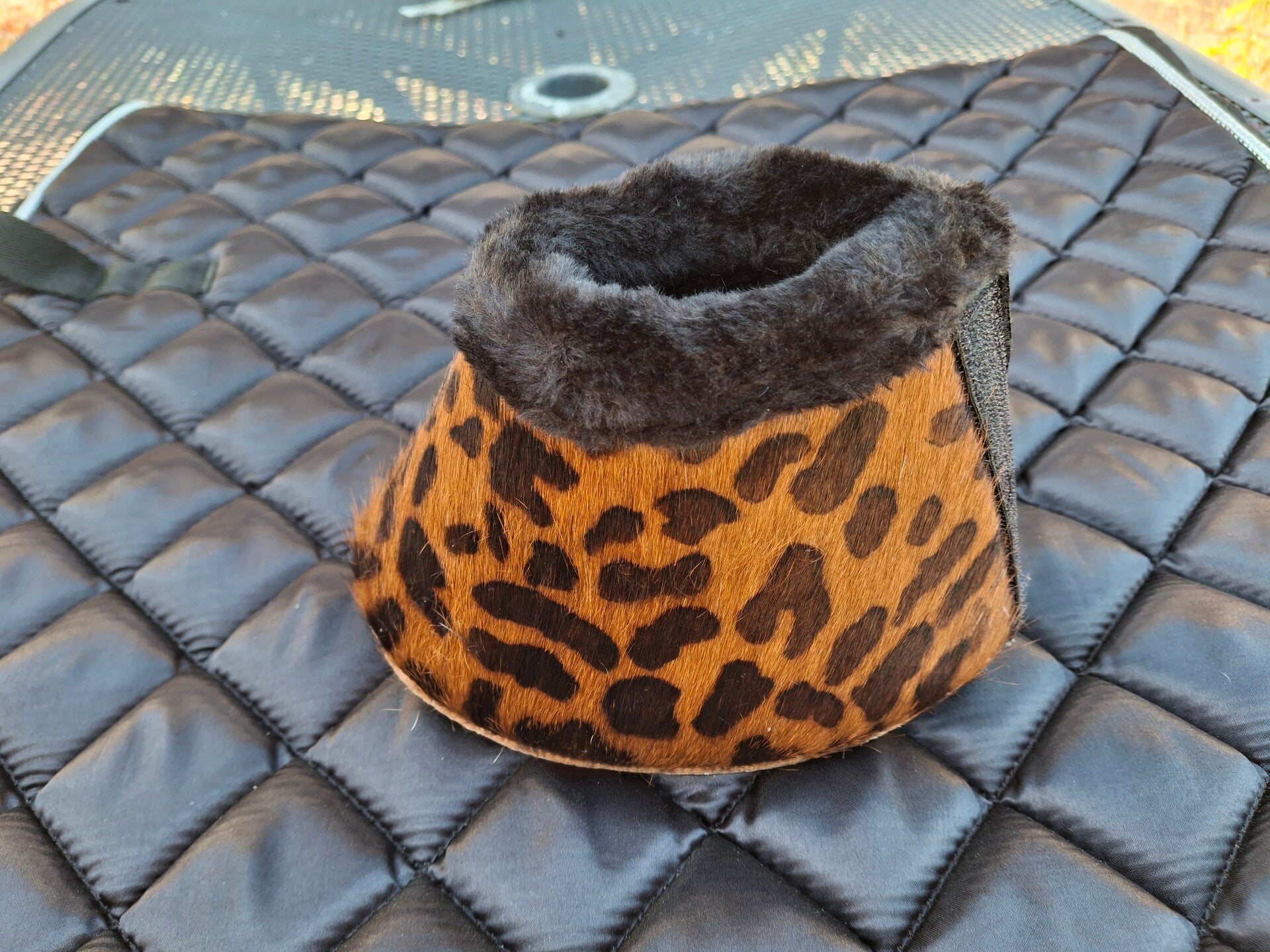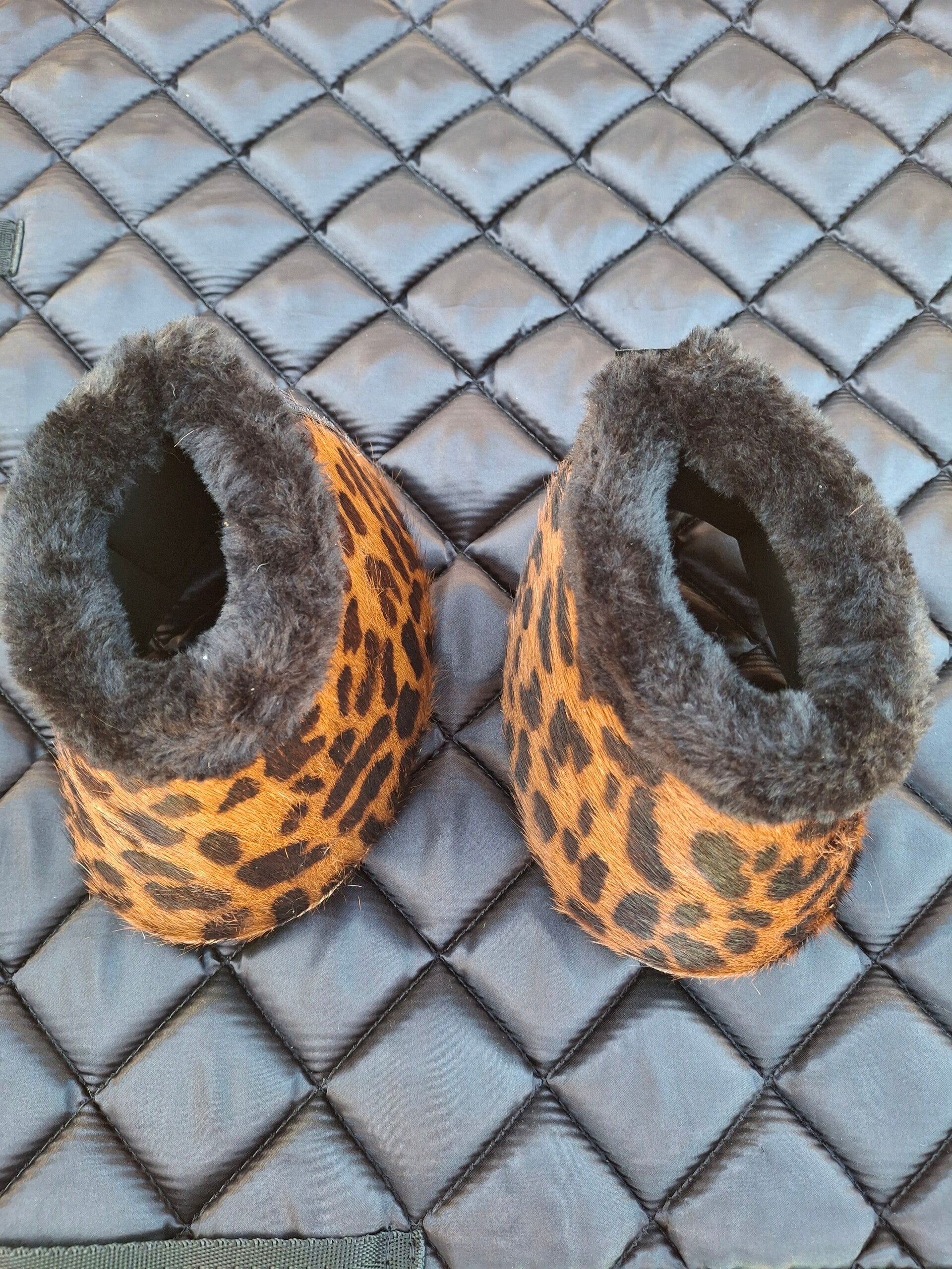Supermooie hoefklossen met aan de volledige buitenzijde ECHTE koevacht, bedrukt met Luipaardpatroon.